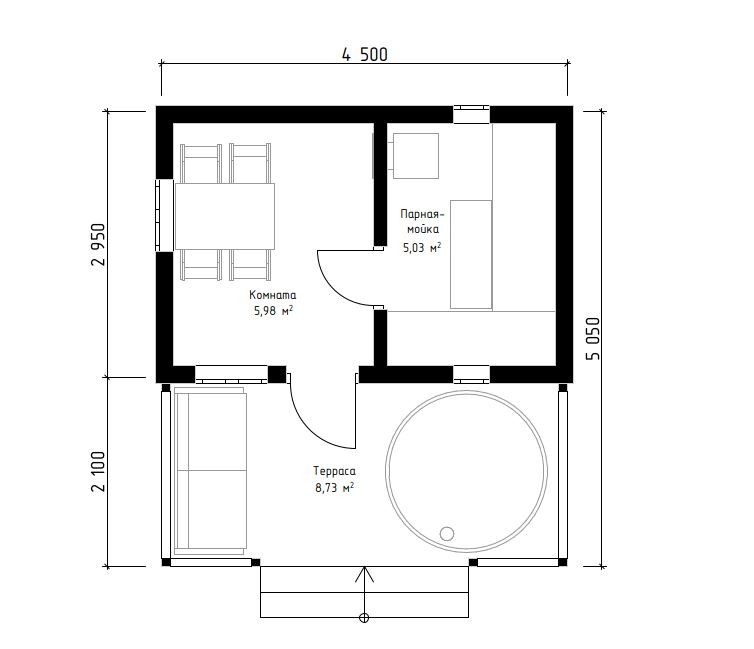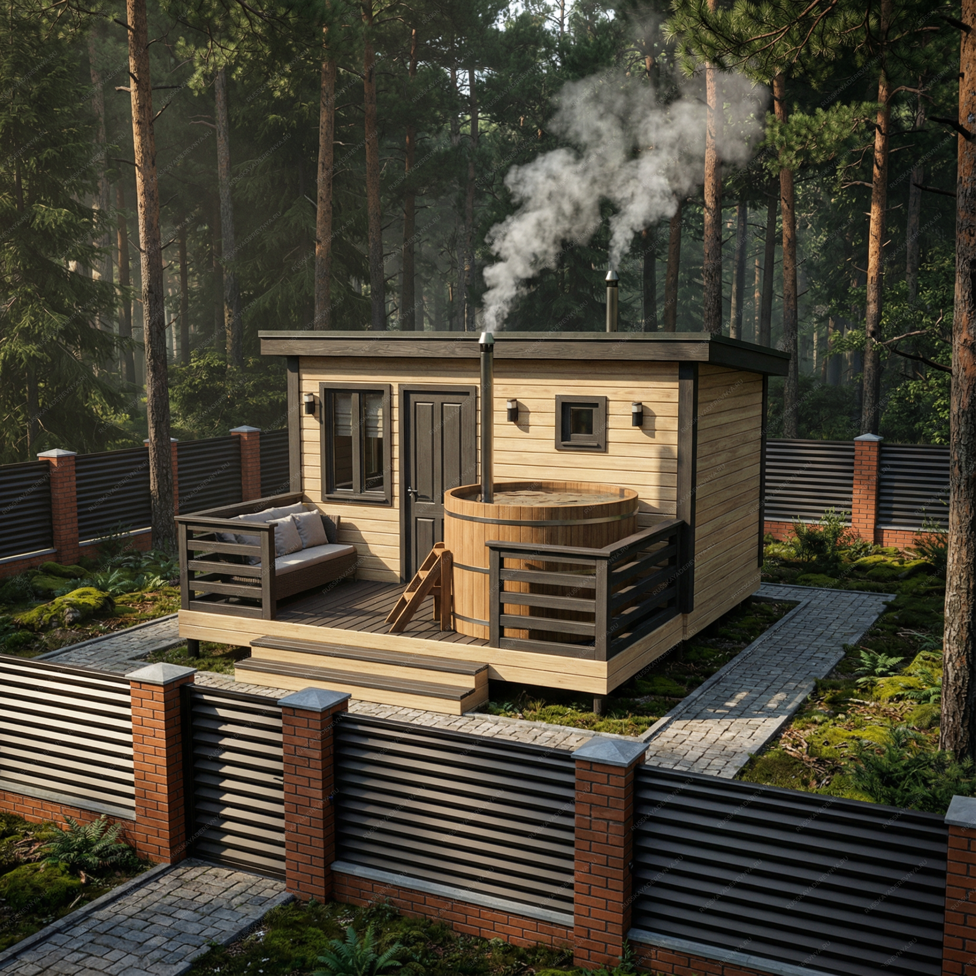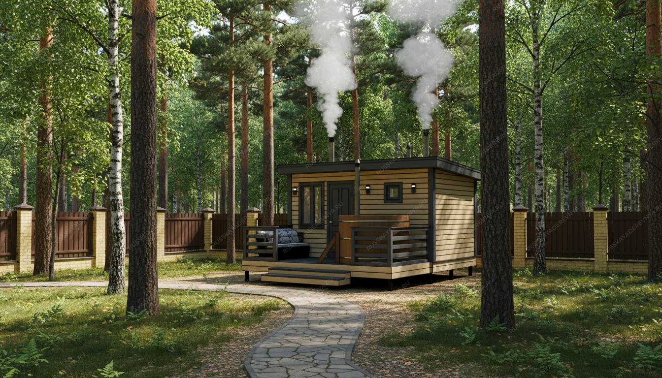 Баня «Аркадия» представляет собой компактное и продуманное до мелочей решение для ценителей традиционных банных ритуалов с элементами современного комфорта. Модель с открытой террасой эффективно использует пространство, создавая многофункциональную зону для отдыха и релаксации на свежем воздухе площадью 8,73 м². Внутренняя планировка отличается рациональностью: объединенная парная-мойка (5,03 м²) с деревянным окном-форточкой обеспечивает правильный пар и удобство проведения процедур. Уютная комната отдыха (5,98 м²) становится теплым и гостеприимным местом для чаепития и общения после пара. Односкатная крыша и общие габариты (2,95х4,5 м + терраса 2,1х4,5 м) придают строению современный динамичный силуэт, гармонично вписывающийся в ландшафт. Этот проект идеально подходит для участков, где важна оптимизация площади без ущерба для функциональности и атмосферы. Качество материалов и строительства гарантирует энергоэффективность, долговечность и создание той особой целебной среды, ради которой и строится настоящая русская баня.