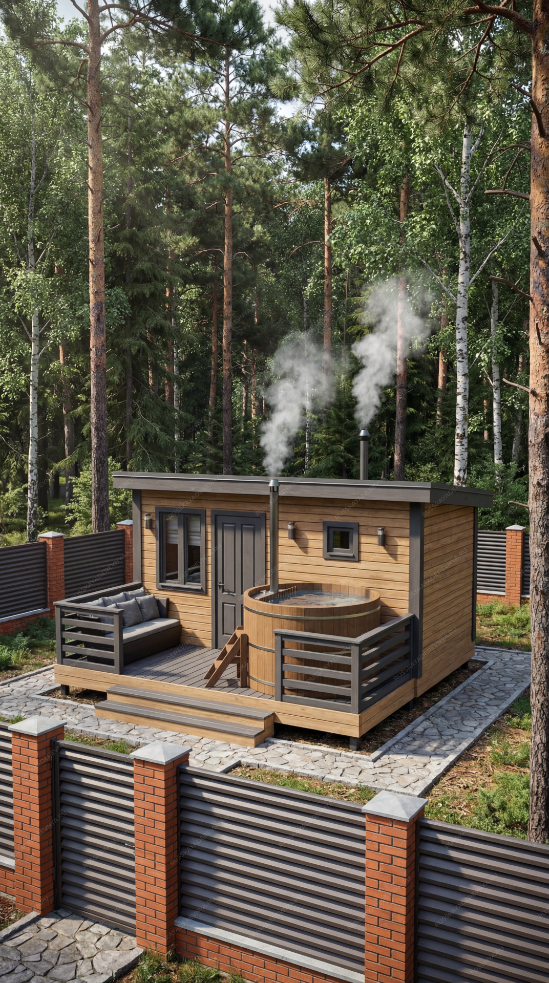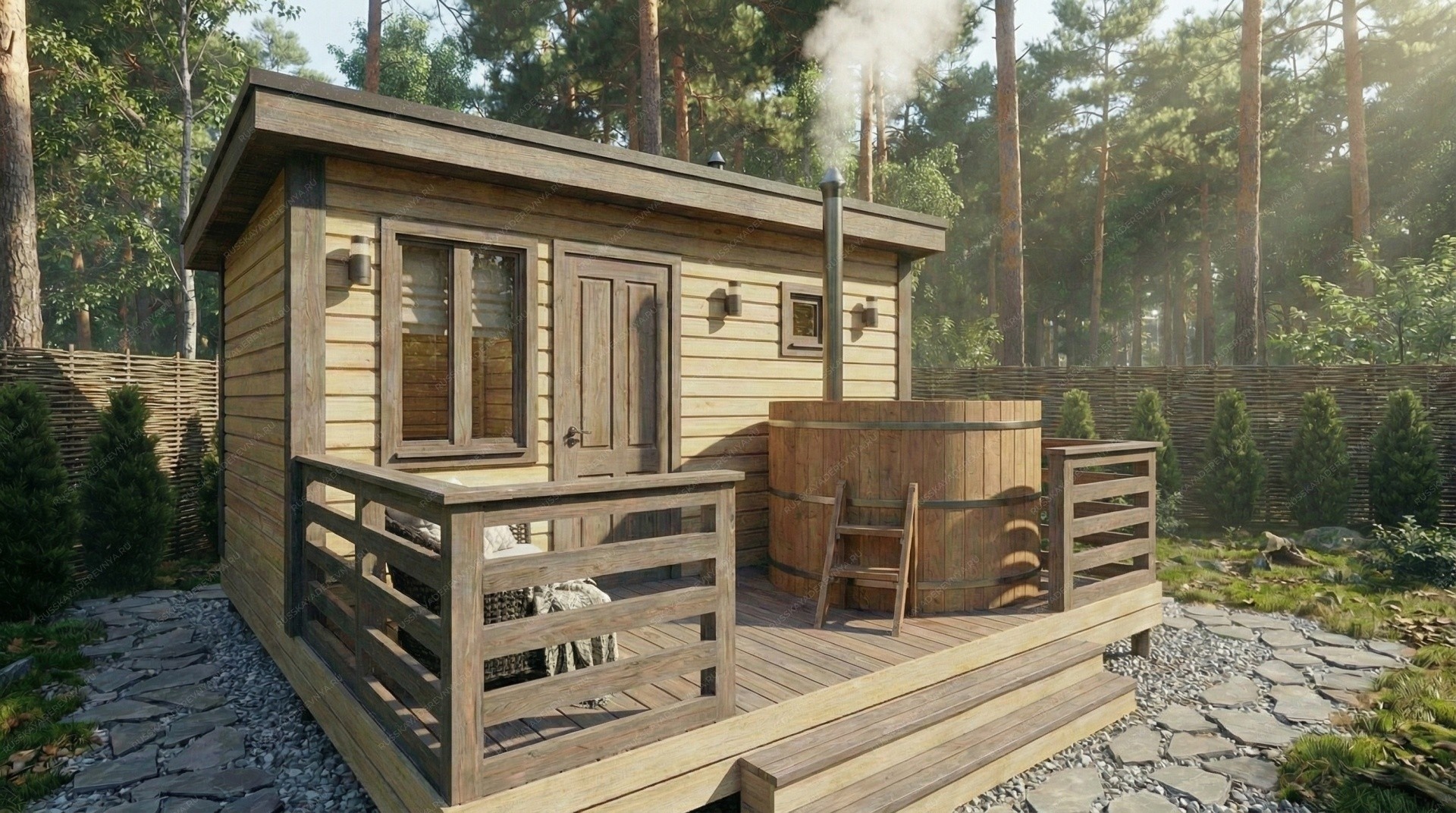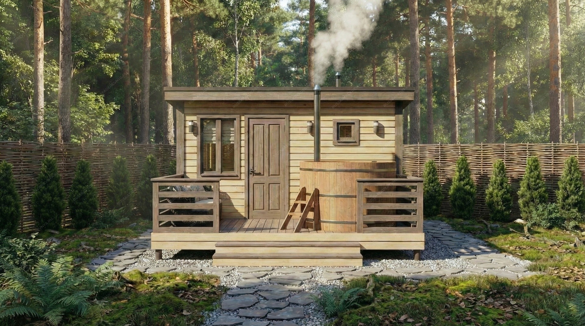 Баня «Аркадия» представляет собой компактное и продуманное до мелочей решение для ценителей традиционных банных ритуалов с элементами современного комфорта. Модель с открытой террасой эффективно использует пространство, создавая многофункциональную зону для отдыха и релаксации на свежем воздухе площадью 8,73 м². Внутренняя планировка отличается рациональностью: объединенная парная-мойка (5,03 м²) с деревянным окном-форточкой обеспечивает правильный пар и удобство проведения процедур. Уютная комната отдыха (5,98 м²) становится теплым и гостеприимным местом для чаепития и общения после пара. Односкатная крыша и общие габариты (2,95х4,5 м + терраса 2,1х4,5 м) придают строению современный динамичный силуэт, гармонично вписывающийся в ландшафт. Этот проект идеально подходит для участков, где важна оптимизация площади без ущерба для функциональности и атмосферы. Качество материалов и строительства гарантирует энергоэффективность, долговечность и создание той особой целебной среды, ради которой и строится настоящая русская баня.