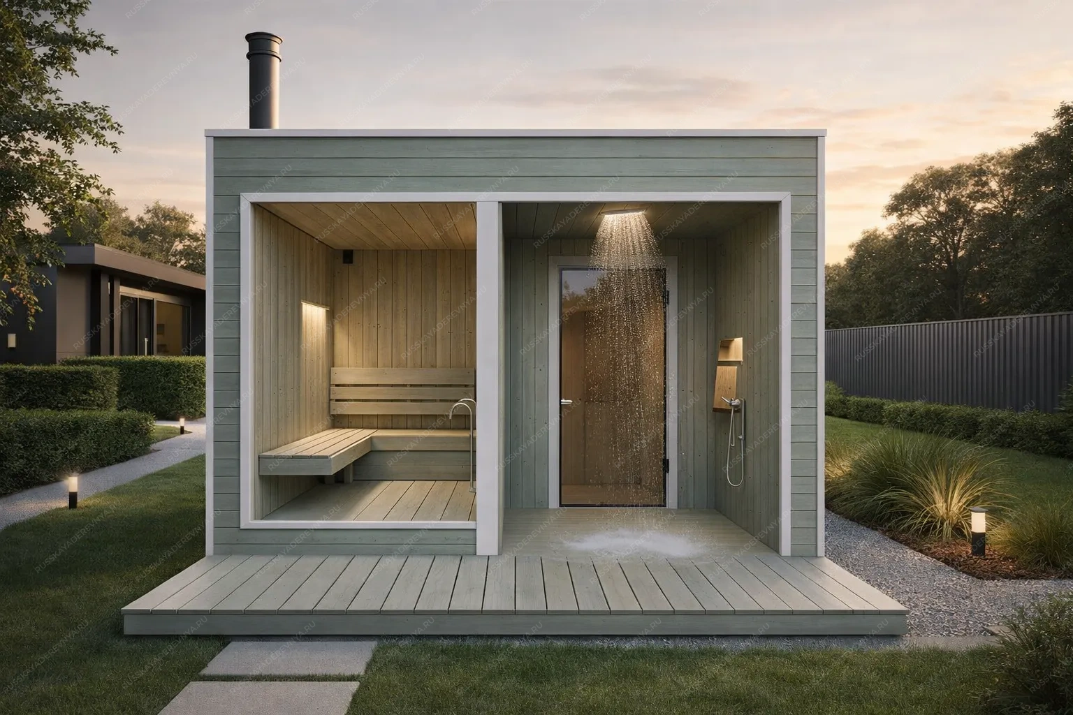 Модульная баня «Борть» формата 5х5 метров с односкатной крышей предлагает лаконичное и концептуальное решение площадью 25 кв.м. для садового участка. Её философия — полное погружение в природу через минималистичную планировку, включающую только парную и открытую душевую зону. Ключевой акцент сделан на панорамном остеклении парной, которое стирает границу между интерьером и ландшафтом, создавая эффект парения прямо в окружении сада. Открытая душевая, организованная под свесом крыши, дополняет эту идею, превращая водные процедуры в продолжение природного контакта. Модульная конструкция обеспечивает высочайшую скорость монтажа и возможность легкой интеграции в любой готовый ландшафт без масштабных работ. Односкатная крыша формирует современный геометричный силуэт. Этот проект — идеальный выбор для ценителей чистых линий, экологичного подхода и максимальной открытости внешней среде, предлагая не просто сауну, а целостное пространство для глубокой релаксации на собственном участке.