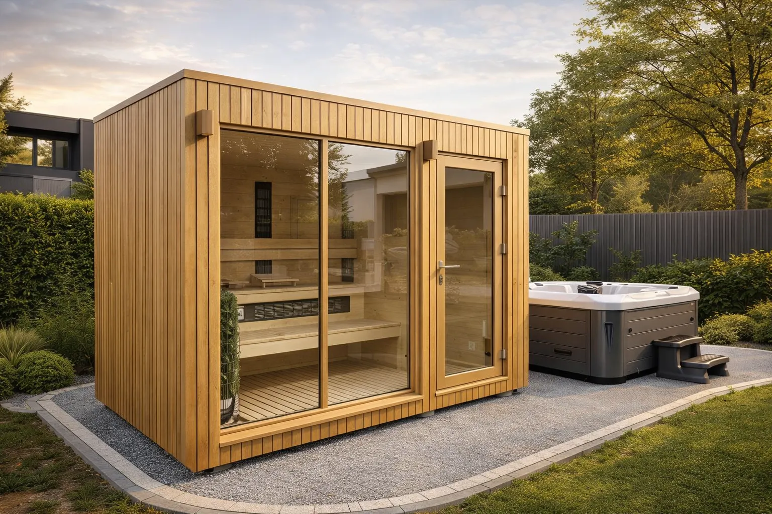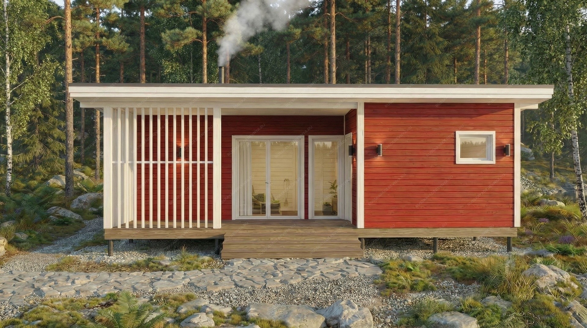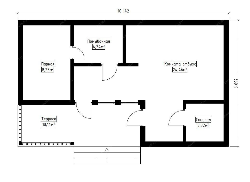 Баня «Гранд» с габаритами 6х10 метров представляет собой просторное одноэтажное строение площадью 60 кв.м. под выразительной односкатной крышей современного дизайна. Архитектурной доминантой проекта является панорамное остекление в комнате отдыха площадью 24,46 кв.м., создающее эффект полного единения интерьера с ландшафтом и наполняющее основное помещение естественным светом. Внутреннее пространство организовано с учетом эргономики и комфорта для большой компании. Функциональная зона включает полноценную парную 8,23 кв.м., отдельную помывочную и санузел. Плавный выход на террасу площадью 10,14 кв.м. превращает баню в многофункциональный комплекс для отдыха, где можно проводить время в любое время года. Односкатная крыша подчеркивает лаконичную и динамичную эстетику, а каркасная технология обеспечивает высокую скорость строительства и отличные энергосберегающие свойства. Модель «Гранд» — это выбор для тех, кто ценит современную архитектуру, большое пространство для гостеприимства и желает создать на участке полноценный центр отдыха с доминирующей ролью природы, благодаря масштабному остеклению.
