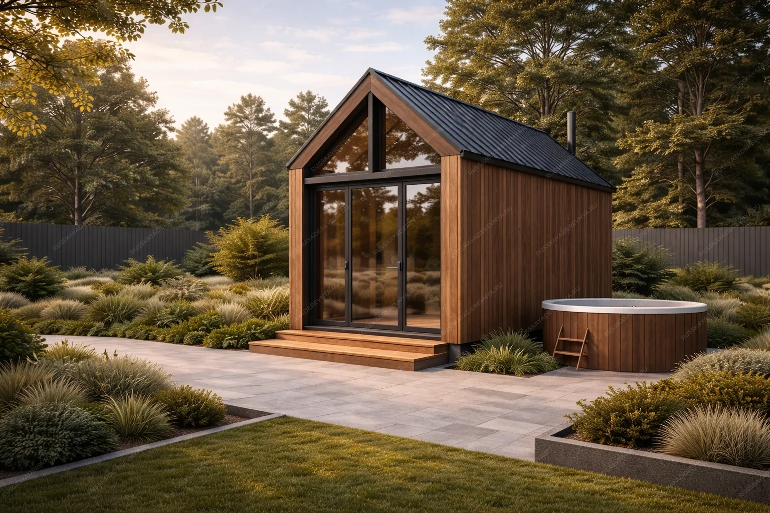 Баня «Кипель» представляет собой мобильное решение в популярном стиле барнхаус, с габаритами 7х2,4 метра и двухскатной крышей. Ее ключевое преимущество — возможность быстрого размещения на участке без капитального фундамента, что идеально для временного использования или в качестве гостевого варианта. При общей площади 26 кв.м. конструкция предлагает полноценную планировку с компактной парной, санузлом, зоной отдыха. Стиль барнхаус проявляется в лаконичных формах, двускатной кровле с характерными свесами и использовании натуральных или фактурных материалов в отделке, что придает строению современный и самобытный вид. Несмотря на минимальную ширину, внутреннее пространство организовано максимально рационально, обеспечивая последовательный переход от парной к отдыху. Данная модель сочетает в себе аутентичность банных традиций, выраженную в стиле, и технологическую практичность мобильных сооружений для современного загородного быта.