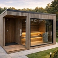 Модульная баня «Радон» площадью 12 кв.м. с односкатной крышей представляет собой ультракомпактное и технологичное решение. Пространство организовано по принципу последовательной анфилады: вход осуществляется через помещение душевой/раздевалки, оснащенное панорамной дверью, ведущее непосредственно в парную. Такая планировка максимально рационально использует каждый метр при габаритах 3х4 метра. Ключевой акцент сделан на визуальной открытости: панорамная дверь в первом помещении и большое окно в парной стирают границу с окружающим ландшафтом, создавая эффект единения с природой. Односкатная крыша подчеркивает современный и лаконичный дизайн. Модульная конструкция обеспечивает предельно быструю сборку на подготовленной площадке. Проект идеально подходит для организации персонального спа-уголка на ограниченной территории, где на первый план выходят функциональность, скорость монтажа и эстетика минимализма, усиленная панорамными элементами.
