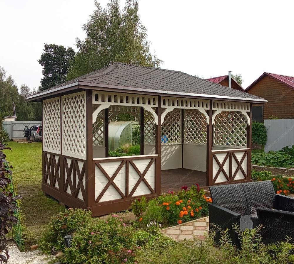 Деревянные беседки — это идеальное решение для создания уютного уголка на вашем загородном участке. Они станут настоящим центром притяжения для семьи и друзей, где можно провести время за общением, отдохнуть в тени или устроить праздник на свежем воздухе. Благодаря продуманному дизайну и надежной конструкции, эти беседки легко впишутся в любой ландшафт и добавят вашему пространству гармонии. Изготовленные из качественного дерева на нашем собственном производстве, деревянные беседки долговечны и устойчивы к внешним воздействиям. Мы используем только качественный пиломатериал и специальные защитные покрытия, которые предохраняют конструкцию от гниения, старения и воздействия погодных условий. В каждую беседку вы можете внести изменения, исходя из собственных пожеланий и особенностей участка. Наши специалисты помогут выбрать подходящую модель и предложат индивидуальные решения для дизайна, обеспечивая функциональность и эстетику. Создайте пространство, в котором приятно проводить время, наслаждаясь природой и общением с близкими!