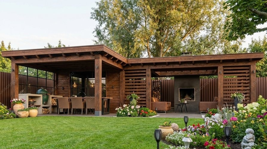 Угловая беседка Байкал 10х5,5 односкатная крыша