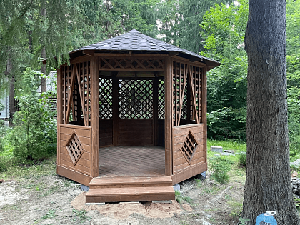 Хотите купить восьмигранную беседку для дачи? Оставляйте заявки по телефону, электронной почте или в мессенджерах — Telegram или WhatsApp. Наши менеджеры подробно расскажут об ассортименте, способах оплаты, условиях доставки. Восьмиугольная беседка от «Русской Деревни» — это сочетание выразительного дизайна, надежности конструкции и природного тепла натурального дерева.