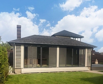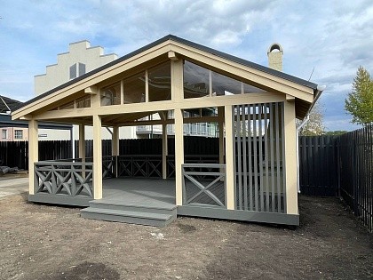 Закрытая и застеклённая беседка Большой Оазис 4х8 четырёхскатная крыша