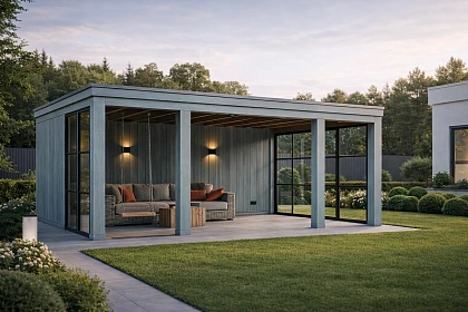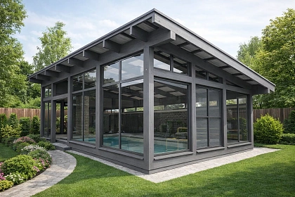 Закрытая и застеклённая беседка Полтево 6х10 сложная крыша