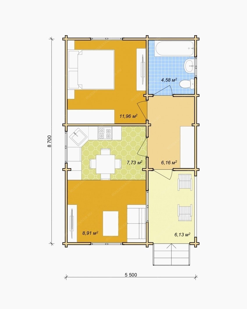 Дачный дом из мини бруса ДЛ-13 8,70x5,5x3,38