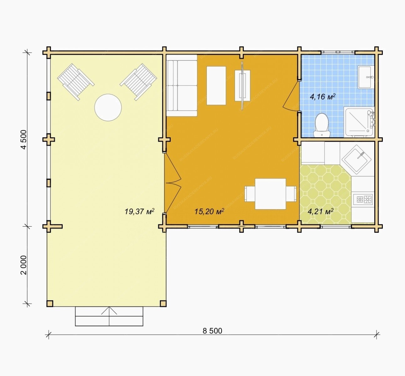 Дачный дом из мини бруса ДЛ-30 8,5x4,5x2,91