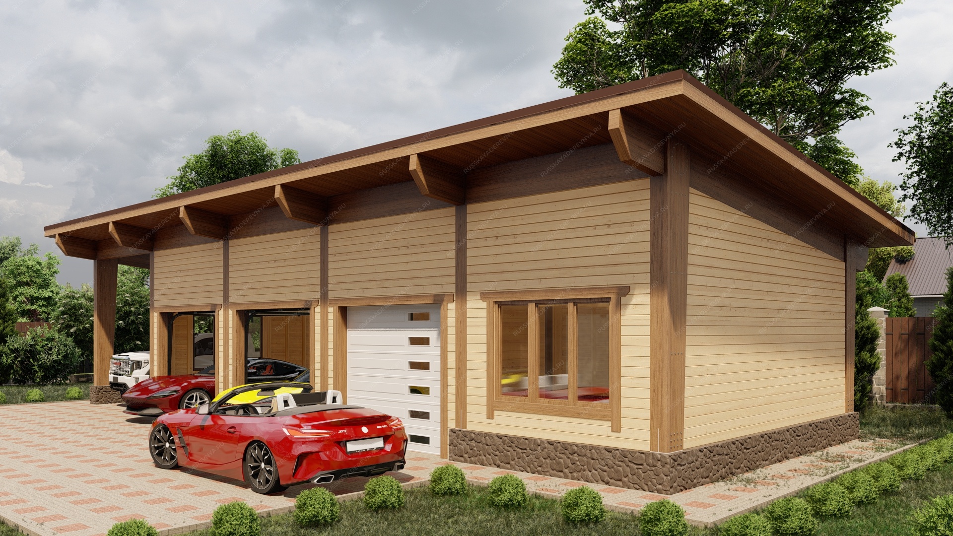 Деревянный гараж — это не только удобное и функциональное сооружение, но и отличная возможность дополнить архитектурный стиль вашего участка. Деревянные конструкции остаются вечной классикой, так как дерево — экологически чистый и натуральный материал. Одним из основных преимуществ деревянных гаражей является их доступная цена, что делает их более выгодным вариантом по сравнению с постройками из других материалов. При правильном строительстве деревянный гараж может служить десятилетиями, сохраняя все свои свойства и привлекательный внешний вид. Мы заботимся о качестве наших конструкций, обрабатывая древесину надёжными пропитками, которые защищают от гниения и плесени. Огнебиозащитные средства обеспечивают устойчивость к влаге, ультрафиолетовому излучению, перепадам температуры и другим атмосферным воздействиям. Кроме того, мы можем предложить утепление гаража, учитывая важность пароизоляции для сохранения тепла и защиты конструкции. Индивидуальное проектирование позволит вам точно вписать гараж в экстерьер вашего участка и оптимально спланировать внутреннее пространство для удобства использования. Создайте идеальное место для хранения вашего автомобиля и оборудования с нашим деревянным гаражом!