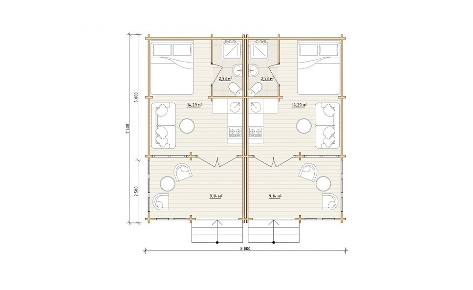 Гостевые дома из мини-бруса ДГ-03 8x7,5x3,51