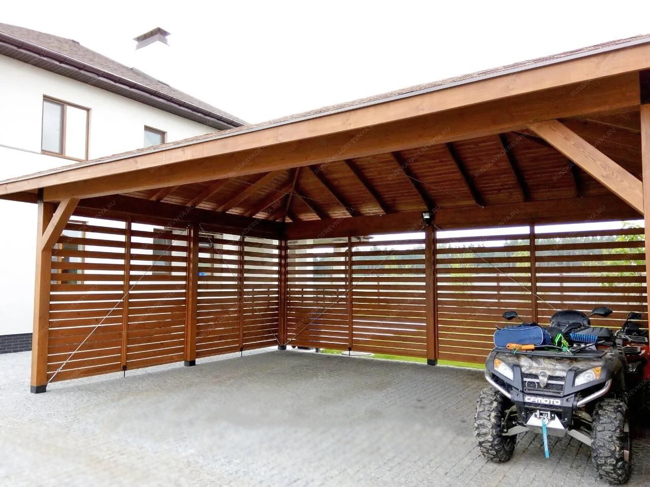 Создайте идеальное место для вашего автомобиля с помощью наших навесов, которые станут неотъемлемой частью вашего загородного участка. Деревянный навес для автомобиля не только защитит ваше транспортное средство от неблагоприятных погодных условий, но и добавит эстетическую ценность вашему двору. Он может быть выполнен как в виде самостоятельной конструкции с классическими архитектурными формами, так и в виде пристройки к дому, гармонично вписываясь в общий ландшафт. Наши специалисты помогут вам выбрать оптимальную конструкцию крыши навеса, обеспечивающую эффективный водосток и правильное расположение относительно солнца, что особенно важно в жаркие дни. Навес из качественной древесины станет надежным парковочным местом для одного или нескольких автомобилей. Мы используем только отборную древесину, прошедшую камерную сушку и обработку антисептиками, что гарантирует долговечность и устойчивость к внешним воздействиям. После защитной обработки лаком навес будет защищен от высокой влажности, что исключает риск растрескивания, разбухания и деформации древесины. Выберите наш навес для автомобиля и обеспечьте своему транспортному средству надежную защиту и стильный внешний вид!
