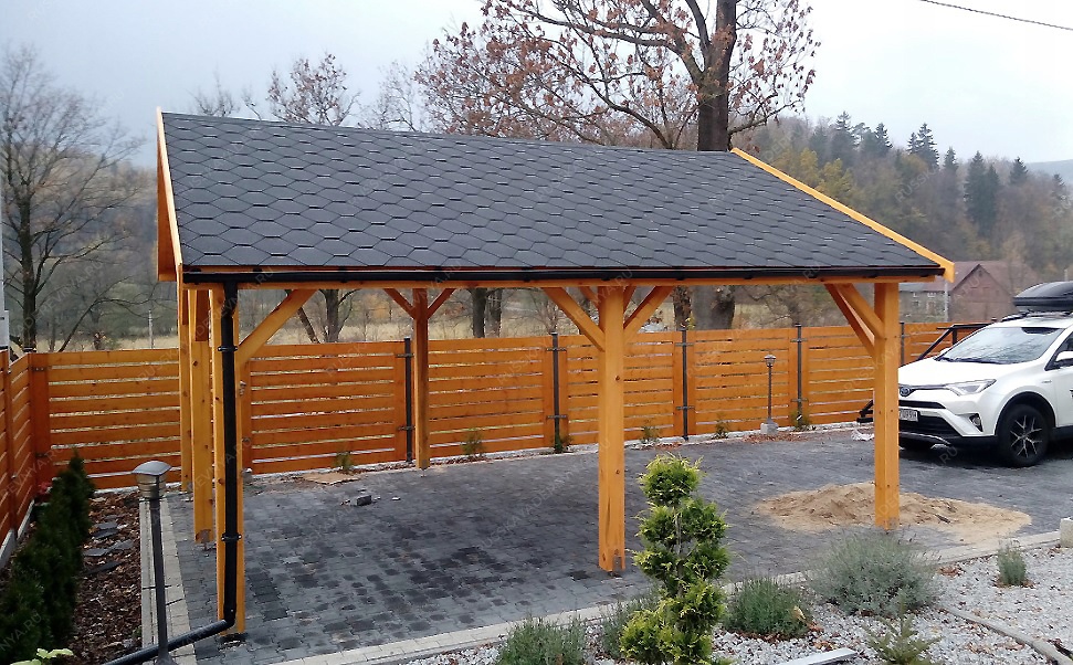 Создайте идеальное место для вашего автомобиля с помощью наших навесов, которые станут неотъемлемой частью вашего загородного участка. Деревянный навес для автомобиля не только защитит ваше транспортное средство от неблагоприятных погодных условий, но и добавит эстетическую ценность вашему двору. Он может быть выполнен как в виде самостоятельной конструкции с классическими архитектурными формами, так и в виде пристройки к дому, гармонично вписываясь в общий ландшафт. Наши специалисты помогут вам выбрать оптимальную конструкцию крыши навеса, обеспечивающую эффективный водосток и правильное расположение относительно солнца, что особенно важно в жаркие дни. Навес из качественной древесины станет надежным парковочным местом для одного или нескольких автомобилей. Мы используем только отборную древесину, прошедшую камерную сушку и обработку антисептиками, что гарантирует долговечность и устойчивость к внешним воздействиям. После защитной обработки лаком навес будет защищен от высокой влажности, что исключает риск растрескивания, разбухания и деформации древесины. Выберите наш навес для автомобиля и обеспечьте своему транспортному средству надежную защиту и стильный внешний вид!