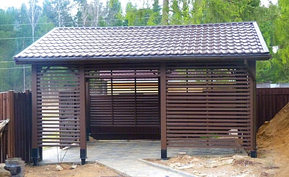 Гараж вальмовый с навесом и двумя въездами Глазово