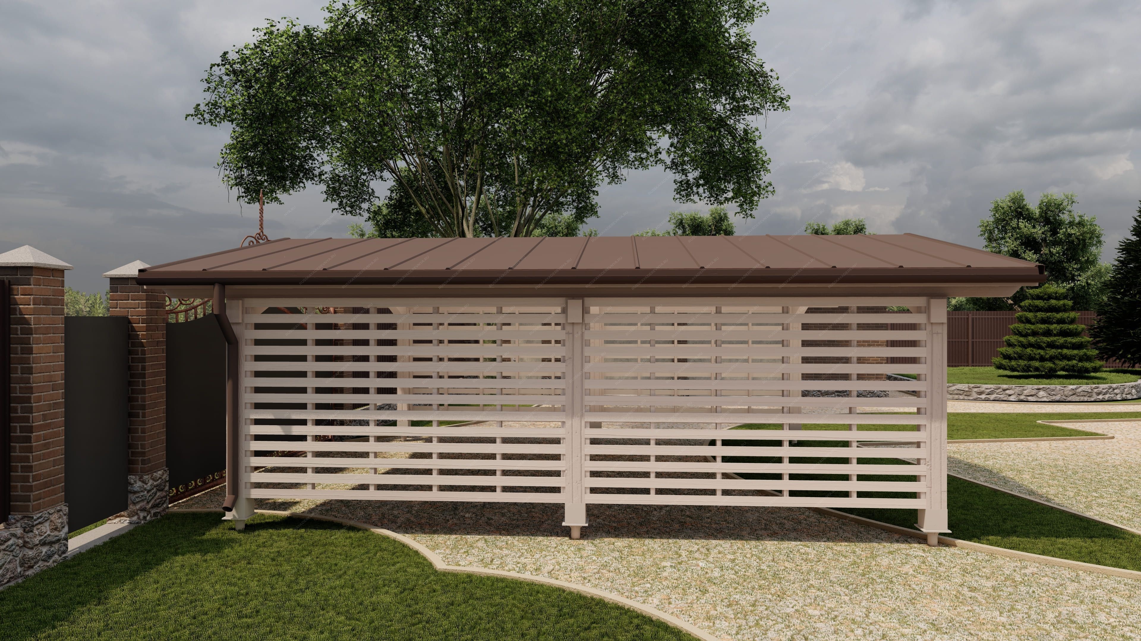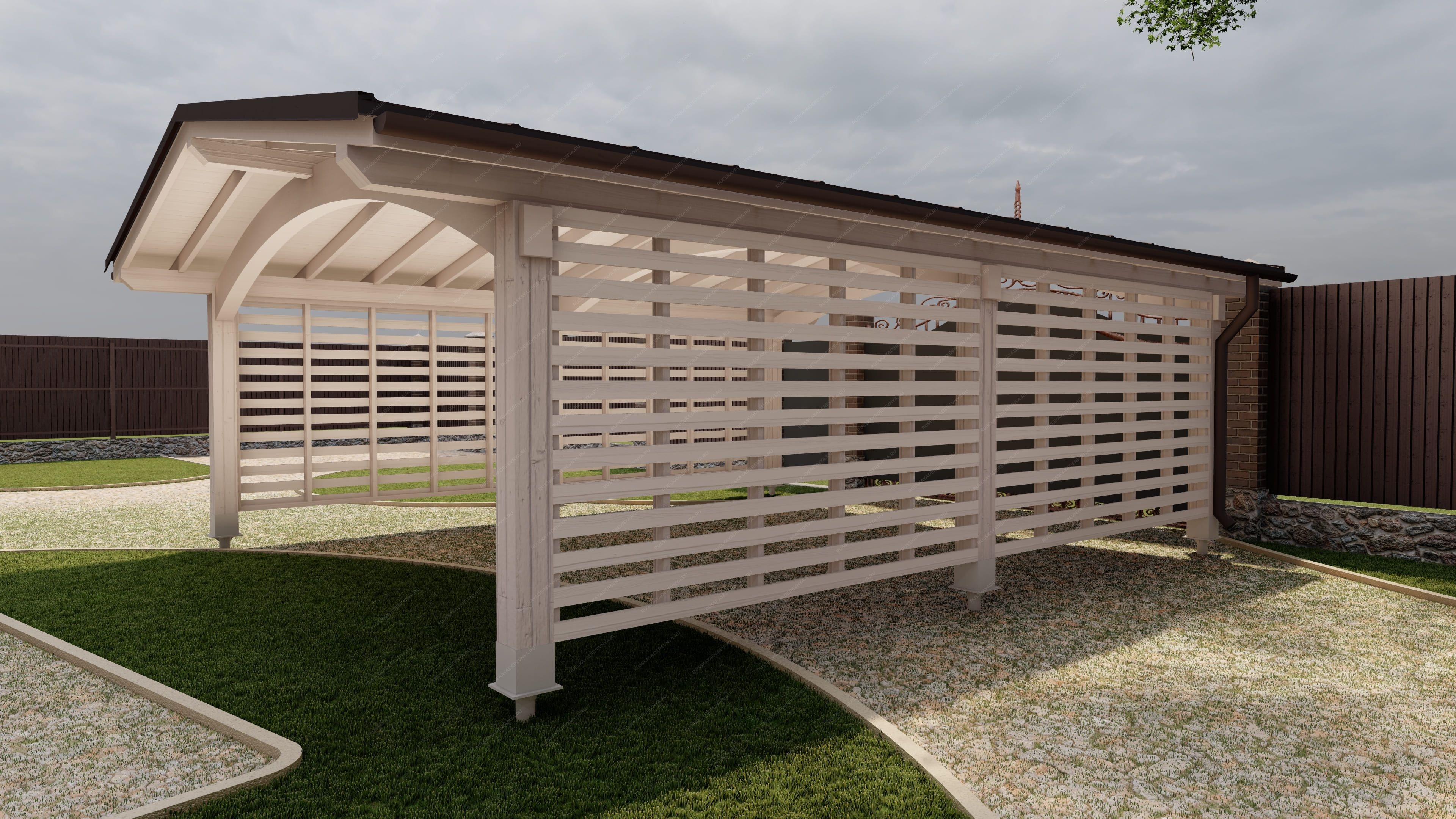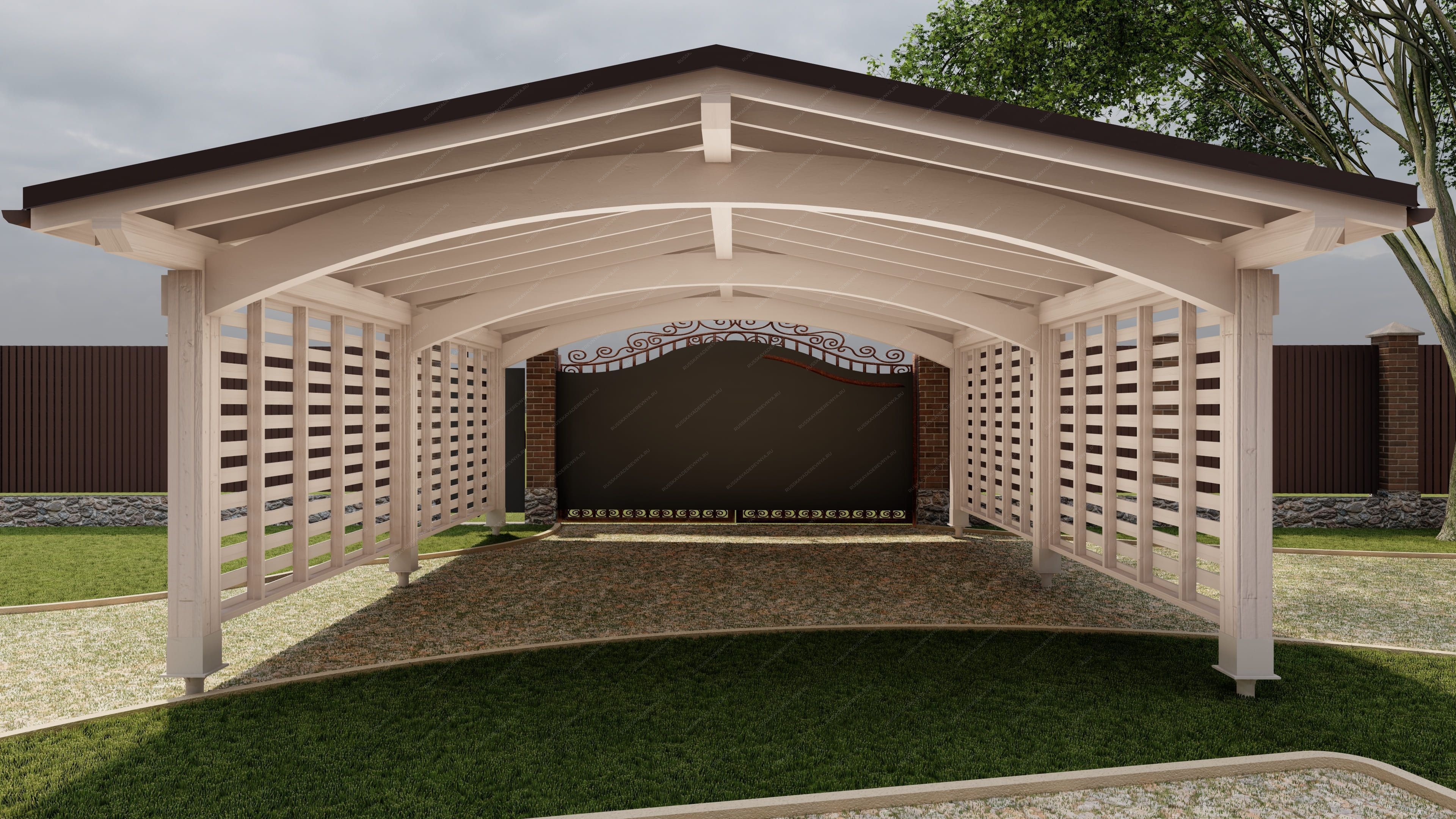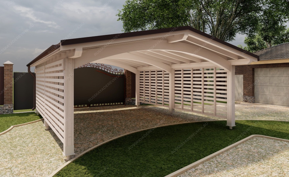 Создайте идеальное место для вашего автомобиля с помощью наших навесов, которые станут неотъемлемой частью вашего загородного участка. Деревянный навес для автомобиля не только защитит ваше транспортное средство от неблагоприятных погодных условий, но и добавит эстетическую ценность вашему двору. Он может быть выполнен как в виде самостоятельной конструкции с классическими архитектурными формами, так и в виде пристройки к дому, гармонично вписываясь в общий ландшафт. Наши специалисты помогут вам выбрать оптимальную конструкцию крыши навеса, обеспечивающую эффективный водосток и правильное расположение относительно солнца, что особенно важно в жаркие дни. Навес из качественной древесины станет надежным парковочным местом для одного или нескольких автомобилей. Мы используем только отборную древесину, прошедшую камерную сушку и обработку антисептиками, что гарантирует долговечность и устойчивость к внешним воздействиям. После защитной обработки лаком навес будет защищен от высокой влажности, что исключает риск растрескивания, разбухания и деформации древесины. Выберите наш навес для автомобиля и обеспечьте своему транспортному средству надежную защиту и стильный внешний вид!