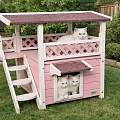 Уличные будки-домики для кошек представляют собой продуманное жилое пространство, созданное для комфортного пребывания питомца на свежем воздухе. Выполненные из натурального дерева, такие сооружения органично вписываются в ландшафт загородного участка, обеспечивая естественную терморегуляцию: летом внутри сохраняется прохлада, а в прохладные дни древесина удерживает тепло, накопленное за световой день. Экологичность материала гарантирует безопасность для здоровья животного, исключая выделение вредных веществ. Архитектура таких домиков часто включает элементы, превращающие обычное укрытие в настоящий кошачий комплекс. Небольшая терраса позволяет питомцу возлежать на солнце, контролируя территорию, а наличие окна даёт возможность наблюдать за происходящим снаружи, оставаясь в укрытии. Лестница, ведущая на второй этаж, превращает будку в многоуровневое пространство для игр и отдыха: верхний ярус кошки нередко используют как наблюдательный пункт или место для уединённого сна, куда не добраться другим животным. Конструкция учитывает природные инстинкты: закрытая нижняя часть служит надёжным убежищем, где можно спрятаться и чувствовать себя в полной безопасности, а открытые элементы стимулируют физическую активность. Качественная обработка древесины и защитные покрытия продлевают срок службы изделия, сохраняя его внешний вид и функциональность в любых погодных условиях. Такой домик становится для кошки не просто будкой, а личным пространством, где можно играть, отдыхать и наблюдать за окружающим миром, находясь в гармонии с природой.