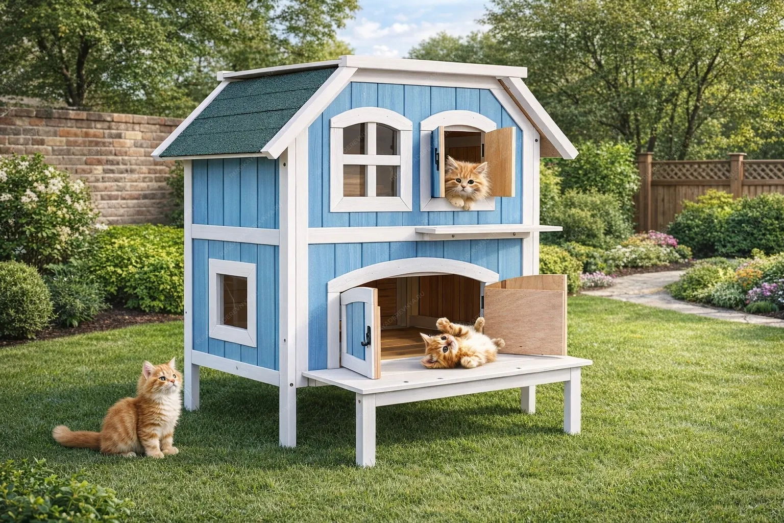 Уличные будки-домики для кошек представляют собой продуманное жилое пространство, созданное для комфортного пребывания питомца на свежем воздухе. Выполненные из натурального дерева, такие сооружения органично вписываются в ландшафт загородного участка, обеспечивая естественную терморегуляцию: летом внутри сохраняется прохлада, а в прохладные дни древесина удерживает тепло, накопленное за световой день. Экологичность материала гарантирует безопасность для здоровья животного, исключая выделение вредных веществ. Архитектура таких домиков часто включает элементы, превращающие обычное укрытие в настоящий кошачий комплекс. Небольшая терраса позволяет питомцу возлежать на солнце, контролируя территорию, а наличие окна даёт возможность наблюдать за происходящим снаружи, оставаясь в укрытии. Лестница, ведущая на второй этаж, превращает будку в многоуровневое пространство для игр и отдыха: верхний ярус кошки нередко используют как наблюдательный пункт или место для уединённого сна, куда не добраться другим животным. Конструкция учитывает природные инстинкты: закрытая нижняя часть служит надёжным убежищем, где можно спрятаться и чувствовать себя в полной безопасности, а открытые элементы стимулируют физическую активность. Качественная обработка древесины и защитные покрытия продлевают срок службы изделия, сохраняя его внешний вид и функциональность в любых погодных условиях. Такой домик становится для кошки не просто будкой, а личным пространством, где можно играть, отдыхать и наблюдать за окружающим миром, находясь в гармонии с природой.