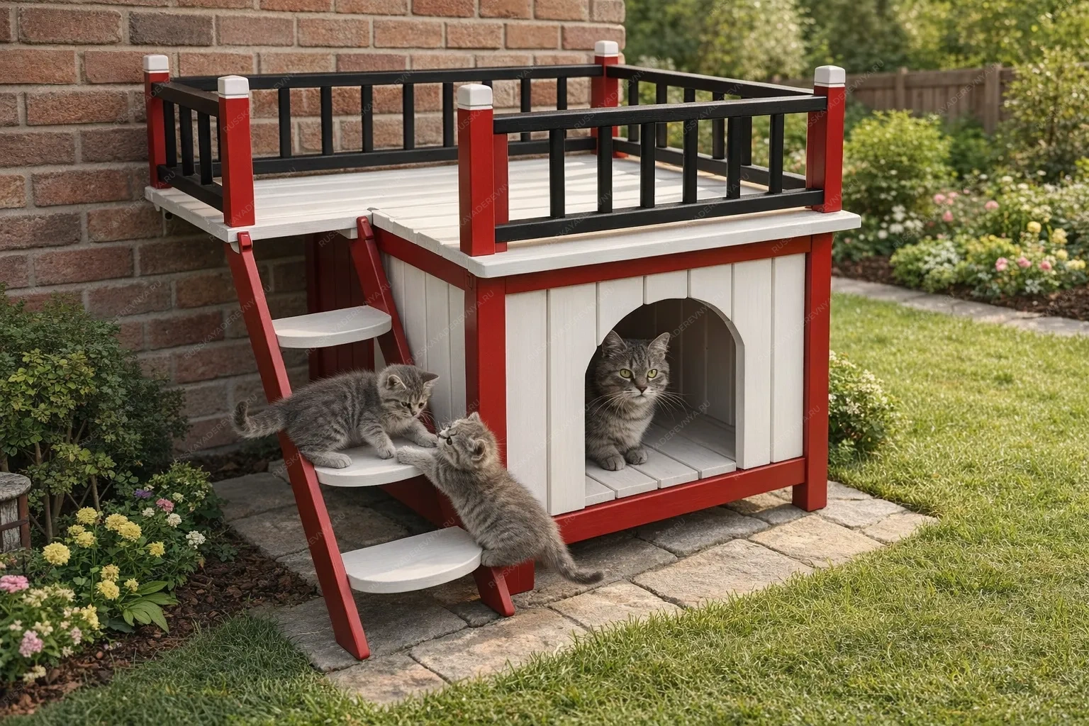 Уличные будки-домики для кошек представляют собой продуманное жилое пространство, созданное для комфортного пребывания питомца на свежем воздухе. Выполненные из натурального дерева, такие сооружения органично вписываются в ландшафт загородного участка, обеспечивая естественную терморегуляцию: летом внутри сохраняется прохлада, а в прохладные дни древесина удерживает тепло, накопленное за световой день. Экологичность материала гарантирует безопасность для здоровья животного, исключая выделение вредных веществ. Архитектура таких домиков часто включает элементы, превращающие обычное укрытие в настоящий кошачий комплекс. Небольшая терраса позволяет питомцу возлежать на солнце, контролируя территорию, а наличие окна даёт возможность наблюдать за происходящим снаружи, оставаясь в укрытии. Лестница, ведущая на второй этаж, превращает будку в многоуровневое пространство для игр и отдыха: верхний ярус кошки нередко используют как наблюдательный пункт или место для уединённого сна, куда не добраться другим животным. Конструкция учитывает природные инстинкты: закрытая нижняя часть служит надёжным убежищем, где можно спрятаться и чувствовать себя в полной безопасности, а открытые элементы стимулируют физическую активность. Качественная обработка древесины и защитные покрытия продлевают срок службы изделия, сохраняя его внешний вид и функциональность в любых погодных условиях. Такой домик становится для кошки не просто будкой, а личным пространством, где можно играть, отдыхать и наблюдать за окружающим миром, находясь в гармонии с природой.