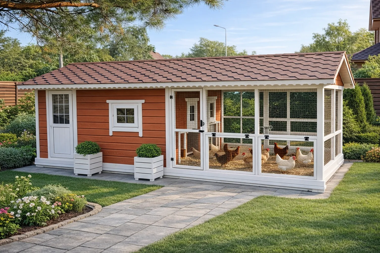 Деревянный крольчатник — это специализированное сооружение для содержания кроликов, созданное с учётом всех особенностей физиологии и поведения этих животных. Натуральная древесина обеспечивает оптимальный микроклимат внутри: материал сохраняет тепло в прохладные ночи, не перегревается на солнце и эффективно регулирует влажность, что критически важно для профилактики респираторных заболеваний у кроликов. Экологически чистая основа исключает выделение токсичных веществ и безопасна даже для молодняка. Конструктивно такие постройки разделены на две функциональные зоны. Закрытая часть представляет собой утеплённый домик-убежище, где животные могут укрыться от непогоды, ветра и прямых солнечных лучей, отдохнуть или спрятаться в случае опасности. Здесь же размещаются кормушки и поилки, защищённые от загрязнения. Открытая ограждённая зона — это выгул с сетчатым или реечным ограждением, где кролики проводят время активно: двигаются, общаются. Такая двухчастная структура максимально приближена к естественным условиям обитания и способствует укреплению иммунитета поголовья. Продуманная конструкция облегчает ежедневный уход: предусмотрены удобные дверцы для чистки и кормления, а съёмные поддоны или реечные полы упрощают поддержание гигиены. Древесина, прошедшая камерную сушку и обработку антисептиками, устойчива к гниению, поражению грибком и воздействию влаги. Отсутствие острых углов и тщательно отшлифованные поверхности исключают риск травмирования животных. Крольчатник из дерева становится не просто местом содержания, а полноценным жилым комплексом, где соблюдены все условия для здоровья, роста и размножения кроликов. Компактные размеры позволяют разместить конструкцию на любом участке, не занимая много места, а природная эстетика дерева гармонично вписывает постройку в окружающий ландшафт.