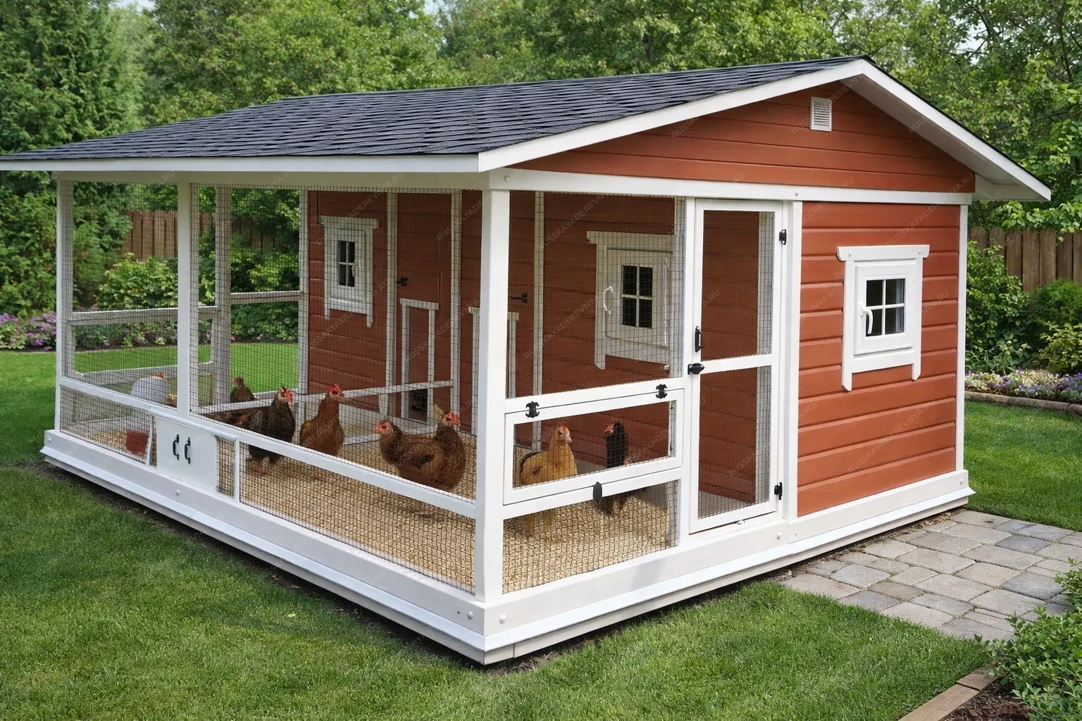 Деревянный курятник — это продуманное жилое пространство для содержания кур, объединяющее комфорт птицы и удобство ухода. Натуральная древесина создаёт внутри здоровый микроклимат: материал эффективно удерживает тепло в холодное время года, не перегревается в летний зной и обеспечивает естественную вентиляцию, что особенно важно для профилактики заболеваний птицы. Экологически чистая основа безопасна для кур любого возраста и исключает вредные испарения. Конструкция традиционно разделена на две функциональные зоны. Закрытая часть представляет собой утеплённый птичник с защитой от сквозняков и осадков, где куры ночуют, несутся и укрываются в непогоду. Здесь уже предусмотрено всё необходимое: удобные насесты для отдыха и гнёзда для кладки яиц, а также кормушки и поилки, размещённые с учётом свободного доступа птицы и простоты наполнения. Открытая ограждённая часть — это просторный выгул с сетчатым ограждением, защищающий поголовье от хищников и позволяющий курам свободно передвигаться, клевать траву и греться на солнце, что напрямую влияет на качество яиц и общее здоровье поголовья. Некоторые модели дополнены небольшим хозблоком для хранения инвентаря, кормов и подстилки. Такое решение позволяет держать всё необходимое под рукой, не загромождая основное помещение и не организуя отдельную постройку на участке. Древесина, прошедшая камерную сушку и обработку защитными составами, устойчива к влаге, перепадам температур и биологическим угрозам. Гладкая поверхность материалов упрощает уборку и дезинфекцию, а продуманная конструкция обеспечивает удобный доступ ко всем зонам. Курятник из дерева становится полноценным комплексом для содержания птицы, где соблюдены все условия для яйценоскости, здоровья и естественного поведения кур, а компактные размеры и природная эстетика позволяют органично вписать постройку в любой участок.