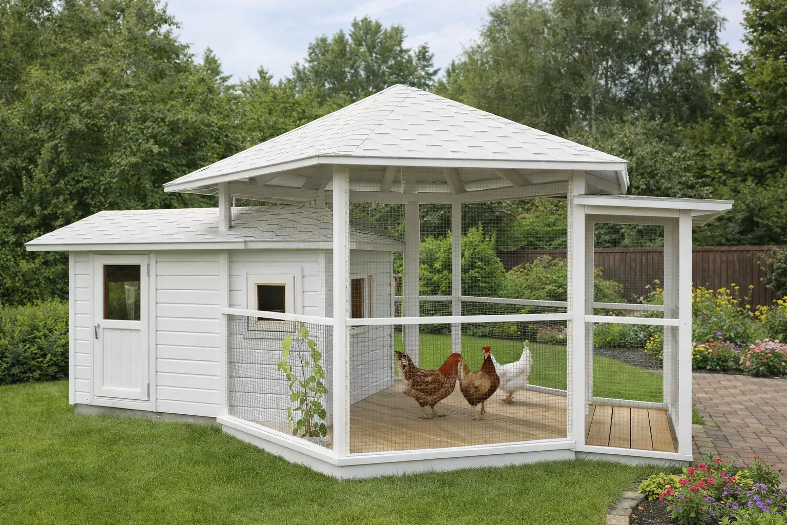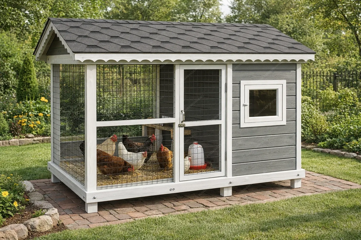 Деревянный курятник — это продуманное жилое пространство для содержания кур, объединяющее комфорт птицы и удобство ухода. Натуральная древесина создаёт внутри здоровый микроклимат: материал эффективно удерживает тепло в холодное время года, не перегревается в летний зной и обеспечивает естественную вентиляцию, что особенно важно для профилактики заболеваний птицы. Экологически чистая основа безопасна для кур любого возраста и исключает вредные испарения. Конструкция традиционно разделена на две функциональные зоны. Закрытая часть представляет собой утеплённый птичник с защитой от сквозняков и осадков, где куры ночуют, несутся и укрываются в непогоду. Здесь уже предусмотрено всё необходимое: удобные насесты для отдыха и гнёзда для кладки яиц, а также кормушки и поилки, размещённые с учётом свободного доступа птицы и простоты наполнения. Открытая ограждённая часть — это просторный выгул с сетчатым ограждением, защищающий поголовье от хищников и позволяющий курам свободно передвигаться, клевать траву и греться на солнце, что напрямую влияет на качество яиц и общее здоровье поголовья. Некоторые модели дополнены небольшим хозблоком для хранения инвентаря, кормов и подстилки. Такое решение позволяет держать всё необходимое под рукой, не загромождая основное помещение и не организуя отдельную постройку на участке. Древесина, прошедшая камерную сушку и обработку защитными составами, устойчива к влаге, перепадам температур и биологическим угрозам. Гладкая поверхность материалов упрощает уборку и дезинфекцию, а продуманная конструкция обеспечивает удобный доступ ко всем зонам. Курятник из дерева становится полноценным комплексом для содержания птицы, где соблюдены все условия для яйценоскости, здоровья и естественного поведения кур, а компактные размеры и природная эстетика позволяют органично вписать постройку в любой участок.