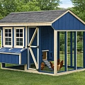 Деревянный курятник — это продуманное жилое пространство для содержания кур, объединяющее комфорт птицы и удобство ухода. Натуральная древесина создаёт внутри здоровый микроклимат: материал эффективно удерживает тепло в холодное время года, не перегревается в летний зной и обеспечивает естественную вентиляцию, что особенно важно для профилактики заболеваний птицы. Экологически чистая основа безопасна для кур любого возраста и исключает вредные испарения. Конструкция традиционно разделена на две функциональные зоны. Закрытая часть представляет собой утеплённый птичник с защитой от сквозняков и осадков, где куры ночуют, несутся и укрываются в непогоду. Здесь уже предусмотрено всё необходимое: удобные насесты для отдыха и гнёзда для кладки яиц, а также кормушки и поилки, размещённые с учётом свободного доступа птицы и простоты наполнения. Открытая ограждённая часть — это просторный выгул с сетчатым ограждением, защищающий поголовье от хищников и позволяющий курам свободно передвигаться, клевать траву и греться на солнце, что напрямую влияет на качество яиц и общее здоровье поголовья. Некоторые модели дополнены небольшим хозблоком для хранения инвентаря, кормов и подстилки. Такое решение позволяет держать всё необходимое под рукой, не загромождая основное помещение и не организуя отдельную постройку на участке. Древесина, прошедшая камерную сушку и обработку защитными составами, устойчива к влаге, перепадам температур и биологическим угрозам. Гладкая поверхность материалов упрощает уборку и дезинфекцию, а продуманная конструкция обеспечивает удобный доступ ко всем зонам. Курятник из дерева становится полноценным комплексом для содержания птицы, где соблюдены все условия для яйценоскости, здоровья и естественного поведения кур, а компактные размеры и природная эстетика позволяют органично вписать постройку в любой участок.