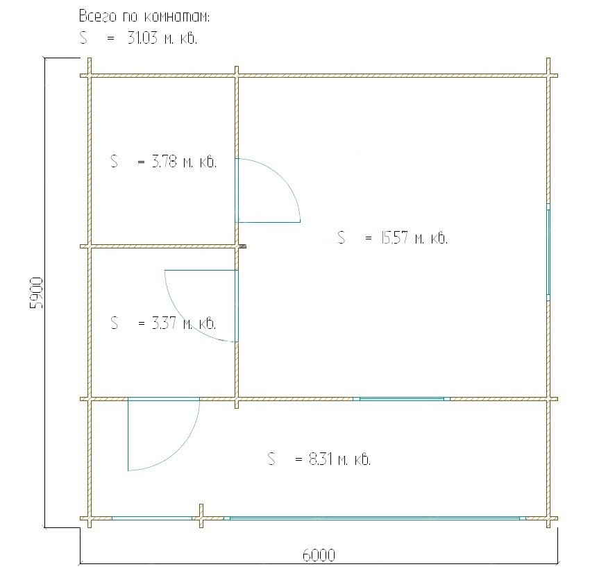 Площадь пола — 15,5 м²+3,4 м²+3,8 м²+8,3 м²