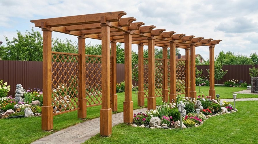 Вся конструкция обрабатывается декоративным деревозащитным составом в 2 слоя - при необходимости дополнительно.
