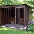 Мы изготавливаем вольеры по особой технологии, придуманной нами и проверенной временем. Установить изделие можно на любую поверхность, под него не нужен фундамент. Мы не ставим вольеры на блоки, поэтому наши вольеры выглядят стильно и аккуратно и не портят ландшафт. Крыша способна выдержать 250кг/м2 - не провалится под слоем снега. Решетка не погнется под натиском даже очень сильной собаки. Стенки очень крепкие - процарапать когтями дыру, сгрызть или пробить своим телом(как в вольерах из ОСБ фанеры, евровагонки или доски 25х100мм) не смогут собаки даже самых крупных пород. Можно выбрать расположение двери (справа или слева), а также направление открытия двери (наружу или внутрь). При заказе хозблока тоже можно выбрать его расположение (справа или слева). Уточняйте при согласовании заказа.