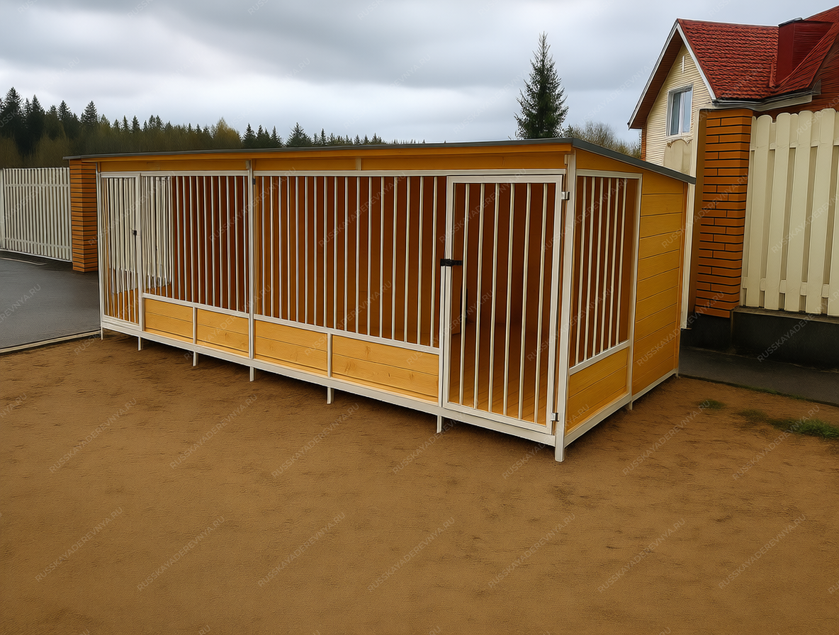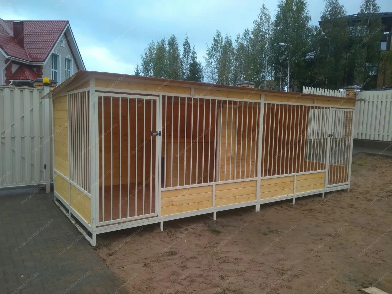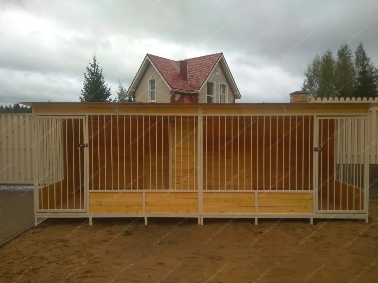 Мы изготавливаем вольеры по особой технологии, придуманной нами и проверенной временем. Установить изделие можно на любую поверхность, под него не нужен фундамент. Мы не ставим вольеры на блоки, поэтому наши вольеры выглядят стильно и аккуратно и не портят ландшафт. Крыша способна выдержать до 500 кг/м2 - не провалится под слоем снега. Решетка не погнется под натиском даже очень сильной собаки. Стенки очень крепкие - процарапать когтями дыру, сгрызть или пробить своим телом (как в вольерах из ОСБ фанеры, евровагонки или доски 25х100мм) не смогут собаки даже самых крупных пород. Можно выбрать расположение двери (справа или слева), а также направление открытия двери (наружу или внутрь). При заказе хозблока тоже можно выбрать его расположение (справа или слева). Уточняйте при согласовании заказа. Поворотная кормушка на 2 миски входит в стоимость.