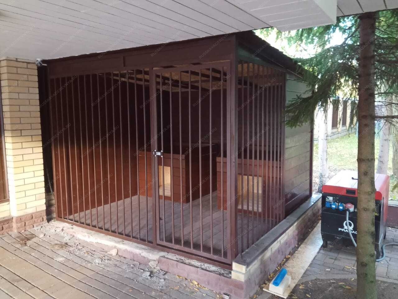 Мы изготавливаем вольеры по особой технологии, придуманной нами и проверенной временем. Установить изделие можно на любую поверхность, под него не нужен фундамент. Мы не ставим вольеры на блоки, поэтому наши вольеры выглядят стильно и аккуратно и не портят ландшафт. Крыша способна выдержать до 500 кг/м2 - не провалится под слоем снега. Решетка не погнется под натиском даже очень сильной собаки. Стенки очень крепкие - процарапать когтями дыру, сгрызть или пробить своим телом (как в вольерах из ОСБ фанеры, евровагонки или доски 25х100мм) не смогут собаки даже самых крупных пород. Можно выбрать расположение двери (справа или слева), а также направление открытия двери (наружу или внутрь). При заказе хозблока тоже можно выбрать его расположение (справа или слева). Уточняйте при согласовании заказа. Поворотная кормушка на 2 миски входит в стоимость.
