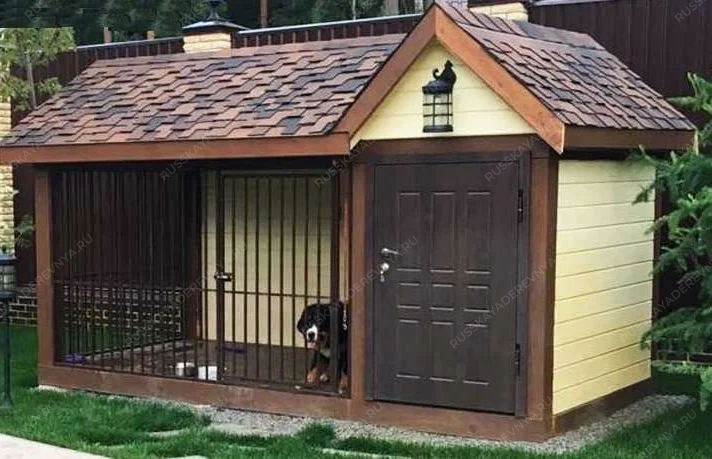 Мы изготавливаем вольеры по особой технологии, придуманной нами и проверенной временем. Установить изделие можно на любую поверхность, под него не нужен фундамент. Мы не ставим вольеры на блоки, поэтому наши вольеры выглядят стильно и аккуратно и не портят ландшафт. Крыша способна выдержать 500кг/м2 - не провалится под слоем снега. Решетка не погнется под натиском даже очень сильной собаки. Стенки очень крепкие - процарапать когтями дыру, сгрызть или пробить своим телом(как в вольерах из ОСБ фанеры, евровагонки или доски 25х100мм) не смогут собаки даже самых крупных пород. Можно выбрать расположение двери (справа или слева), а также направление открытия двери (наружу или внутрь). При заказе хозблока тоже можно выбрать его расположение (справа или слева). Уточняйте при согласовании заказа. Поворотная кормушка на 2 миски входит в стоимость.