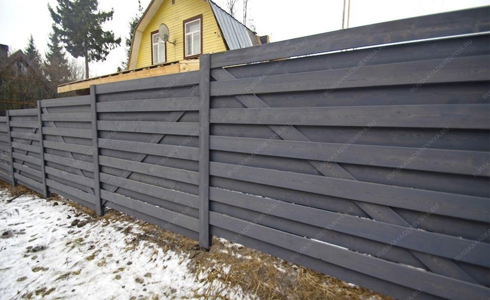 Забор №41 - горизонтальный шахматный с диагональю