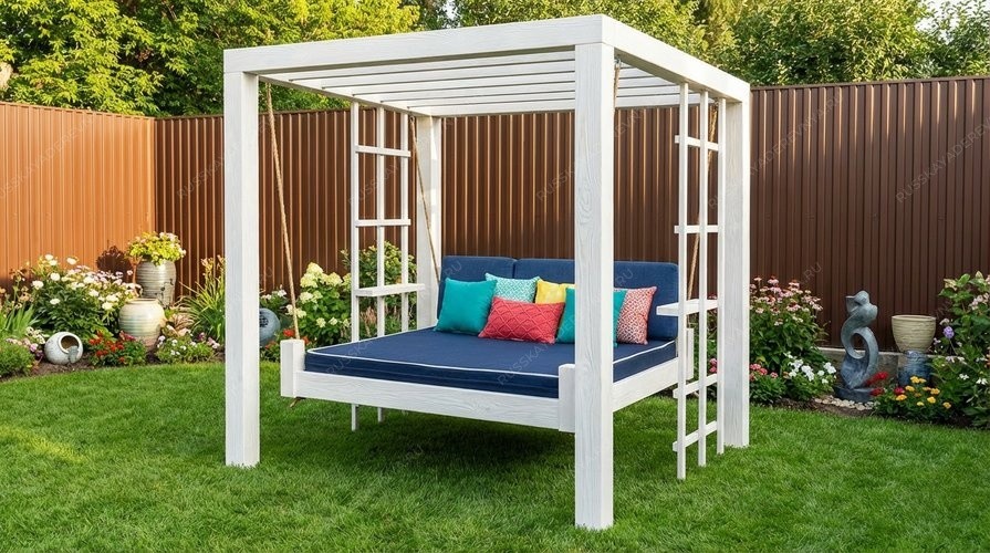 Качели — это незаменимый элемент для создания уютной зоны отдыха на даче. Они позволяют наслаждаться свежим воздухом и красотой природы, создавая атмосферу уюта и релаксации Наши качели отличаются надежностью и комфортом. Они выполнены из качественных материалов, что гарантирует их долговечность и устойчивость к погодным условиям. Эти качели идеально вписываются в ландшафт вашего участка, добавляя ему стильный и современный акцент. Они станут любимым местом для всей семьи, где можно провести время в общении и отдыхе. Создайте на своей даче уголок спокойствия и уюта с нашими садовыми качелями, которые подарят вам множество приятных моментов на свежем воздухе!