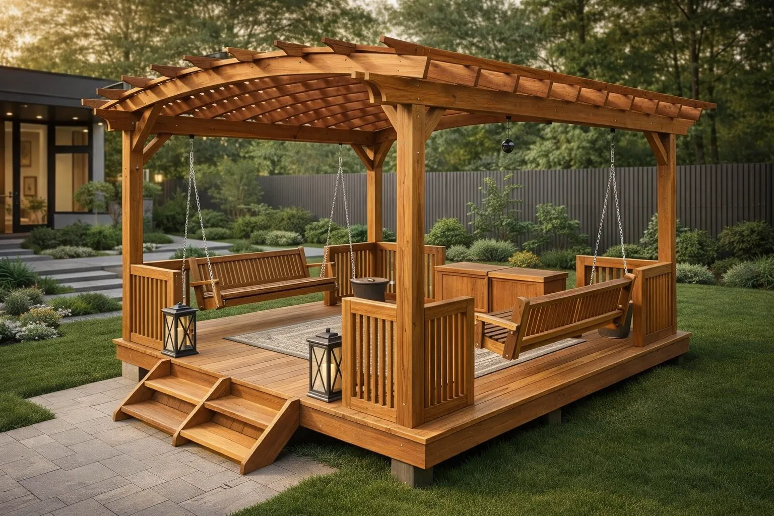 Качели — это незаменимый элемент для создания уютной зоны отдыха на даче. Они позволяют наслаждаться свежим воздухом и красотой природы, создавая атмосферу уюта и релаксации Наши качели отличаются надежностью и комфортом. Они выполнены из качественных материалов, что гарантирует их долговечность и устойчивость к погодным условиям. Эти качели идеально вписываются в ландшафт вашего участка, добавляя ему стильный и современный акцент. Они станут любимым местом для всей семьи, где можно провести время в общении и отдыхе. Создайте на своей даче уголок спокойствия и уюта с нашими садовыми качелями, которые подарят вам множество приятных моментов на свежем воздухе!
