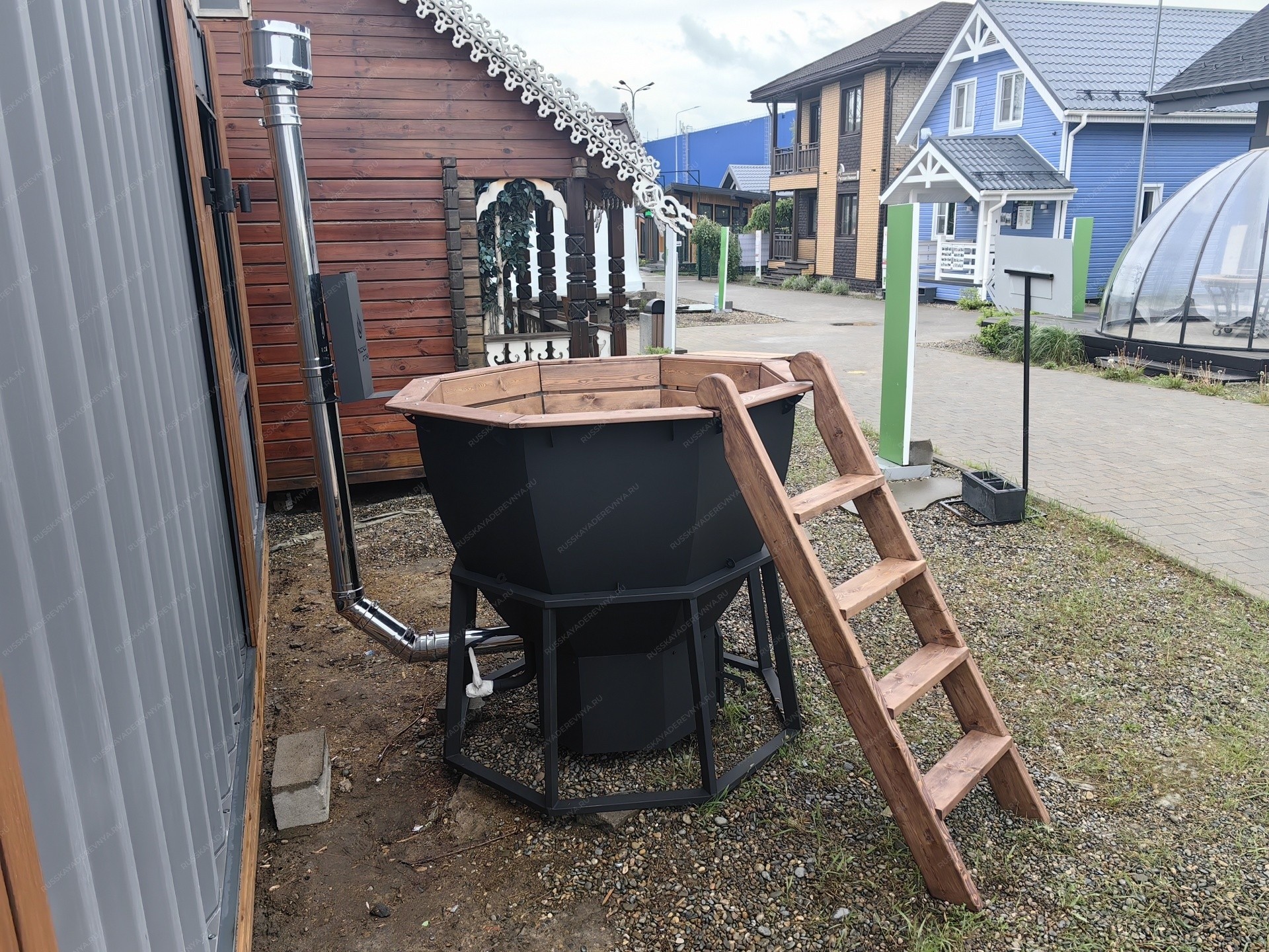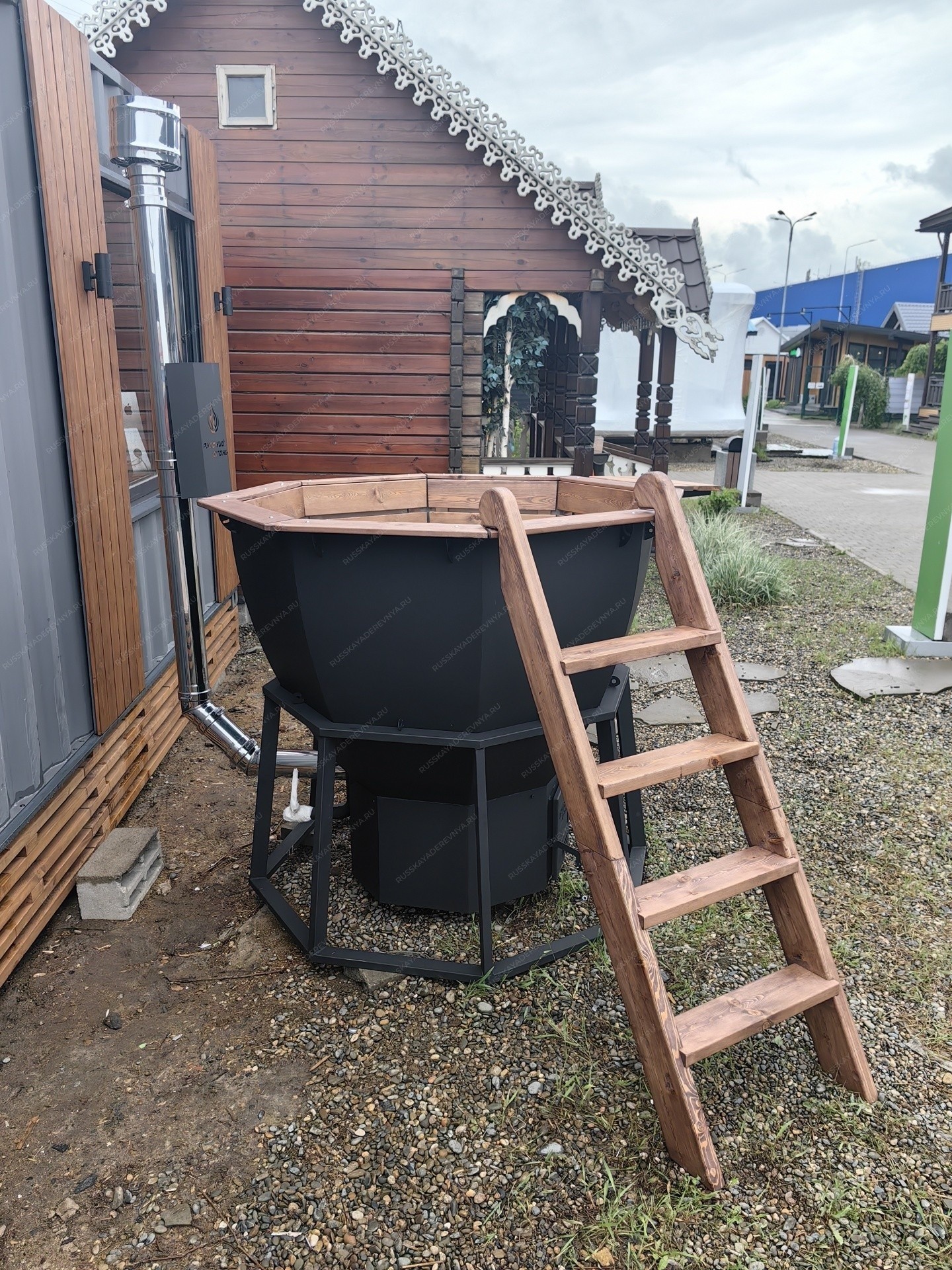 Банный чан - это идеальное решение для комфортного отдыха на свежем воздухе в любое время года. Чан выполнены из нержавеющей стали AISI 201, а сверху покрыты жаропрочной черной порошковой краской. Внутренняя отделка чаши состоит из подножника, сидений, спинки из лиственницы, обработанной эко-маслом. Все элементы съёмные для удобства чистки баннного чана и замены в случане необходимости.Этот банный чан станет отличным дополнением к вашему загородному дому или даче, обеспечивая комфорт и уют во время отдыха. Насладитесь теплом и расслаблением в кругу семьи и друзей!