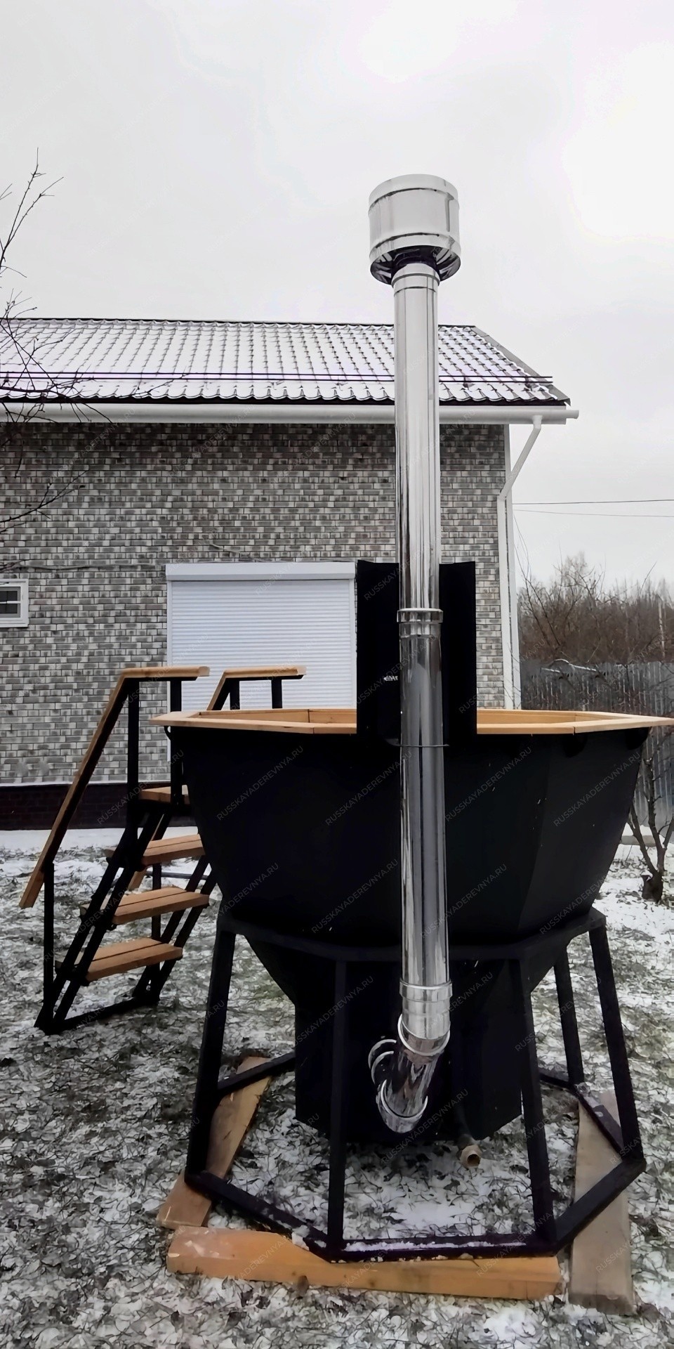 Банный чан - это идеальное решение для комфортного отдыха на свежем воздухе в любое время года. Чан выполнены из нержавеющей стали AISI 430, а сверху покрыты жаропрочной черной порошковой краской. Внутренняя отделка чаши состоит из подножника, сидений, спинки из лиственницы, обработанной эко-маслом. Все элементы съёмные для удобства чистки баннного чана и замены в случане необходимости.Этот банный чан станет отличным дополнением к вашему загородному дому или даче, обеспечивая комфорт и уют во время отдыха. Насладитесь теплом и расслаблением в кругу семьи и друзей!