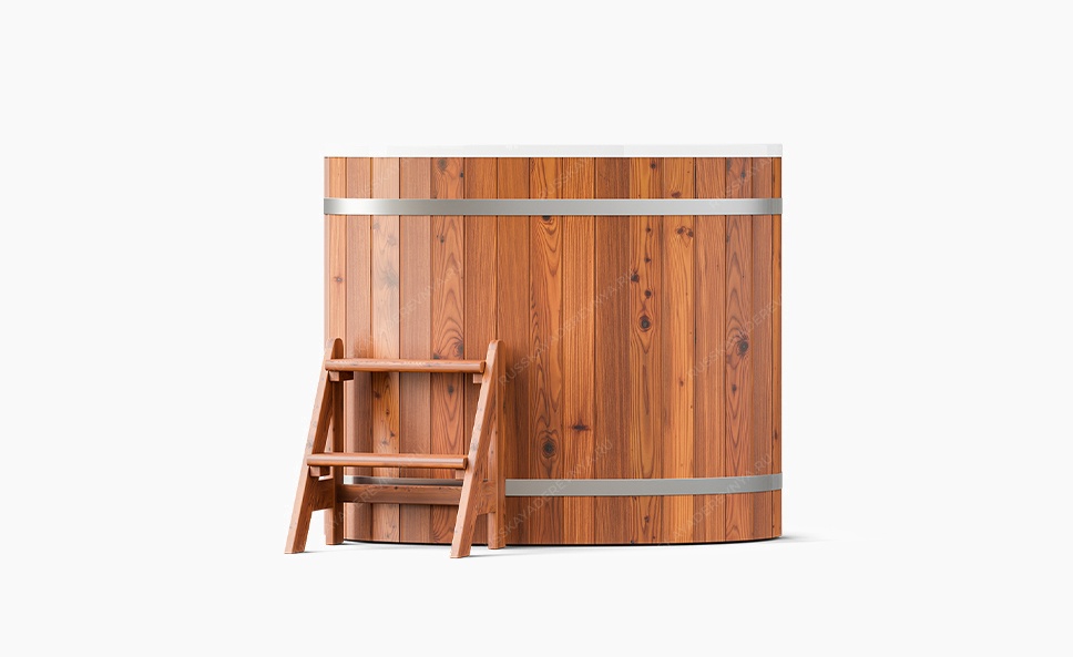 Идеальный овал, плавные линии, благородное термодерево. В этой купели с комфортом помещается один человек – то, что нужно для уютного спа-комплекса, массажного кабинета или домашней сауны. Чаша купели изготавливается из инновационного многослойного композита, с использованием декоративно-защитного высокопрочного материала премиум-класса – гелькоут, немецкой компании BUFA. Гелькоут абсолютно безопасен для человека и позволяет добиться глянцевого эффекта. Покрытие купели гладкое, приятное на ощупь, ослепительно белого цвета – вода в такой купели всегда кристально чистая.
