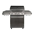 Maestro 5000 – газовый гриль с 5-ю горелками, на котором вы с легкостью сможете готовить сразу несколько блюд, используя разные температурные зоны. На чугунной решетке свободно помещается 15 стейков! Гриль отлично подходит для запекания дичи на решетке или вертеле. Maestro 5000 порадует вас стабильной работой в любую погоду, быстрым набором температуры и равномерным нагревом решетки. Гриль прост и удобен в эксплуатации. То, что нужно для тех, кто планирует готовить часто, много и с удовольствием! Благодаря широкому функционалу Maestro 5000 способен заменить передвижную кухню на вашем приусадебном участке. На нем вы сможете не только жарить мясо и рыбу, но и готовить сложные блюда ресторанного уровня, не имея специального образования! А продуманная до мелочей конструкция гриля, позволит делать это максимально комфортно. Два вместительных боковых столика помогут освободить руки от тарелок, соусов и специй. Крючки для аксессуаров дадут возможность повесить полотенце, щипцы и лопатку «под рукой». Шкаф с распашными дверцами позволит аккуратно разместить баллон с газом и крупногабаритную посуду.