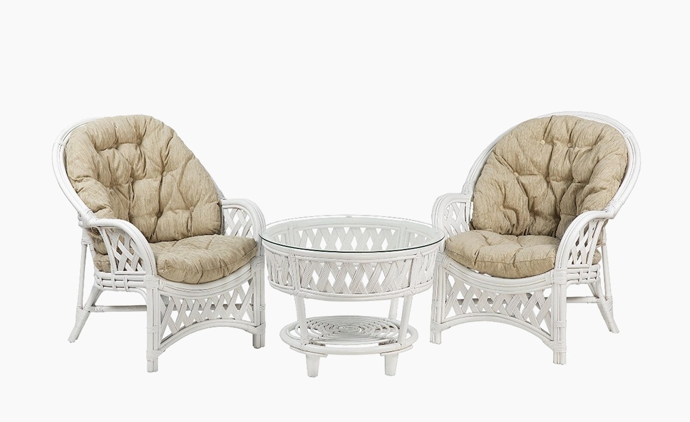 Изысканный комплект с 2 креслами и овальным столом привнесет в интерьер роскошь и элегантность. Кресла комплектуются удобными мягкими подушками из плотной ткани. Особенности материала: Ротанг натуральный - это материал, представляющий собою очищенные и высушенные стебли каламуса, или ротанговой пальмы - тропического растения, произрастающего в Юго-Восточной Азии. Мебель из натурального ротанга характеризуется экологической чистотой, прочностью и долговечностью. Может использоваться в загородных домах и на дачах. Правила ухода за изделиями: Для удаления пыли используйте влажную губку или щетку с мягкой щетиной. После влажной обработки поверхность необходимо протереть насухо. Не рекомендуется заливать водой или оставлять на улице под дождем. Не рекомендуется размещать под прямыми солнечными лучами и вблизи отопительных приборов. Оптимальные условия хранения от +5 до +40C.