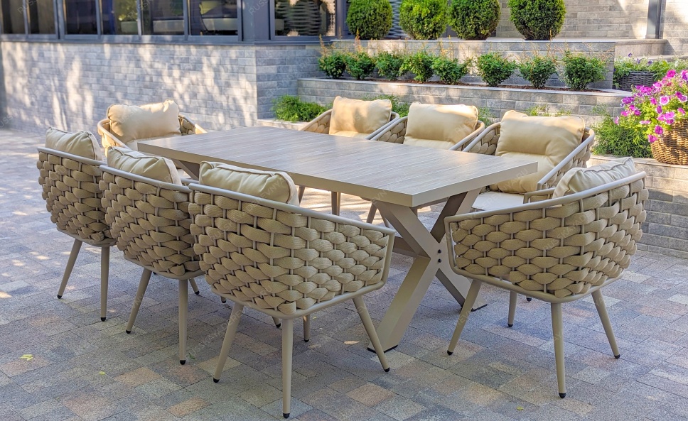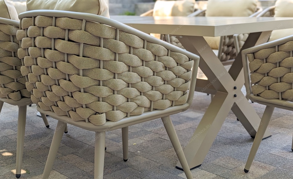 Коллекция КАРЕЛИЯ смотрится красиво в любом сочетании каркаса и роупа, но в этом варианте цвета – это просто невероятно красиво! Кресла в коллекции КАРЕЛИЯ очень удобные по посадке. Они не совсем строгие, как принято в обеденном варианте кресел, а более вольготные, но при этом функционал сохранен идеально. Алюминиевый каркас окрашен порошковой краской, оплетен роупом – синтетическим полимерным материалом с повышенными эксплуатационными характеристиками на основе текстилена. Подушки сшиты из влагостойкой ткани с УФ защитой. Чехлы съемные, их можно стирать. Столешница сделана из керамогранита, идеально подобранного по цвету к основанию стола и каркасам кресел. Стол и кресла поставляются в разборном виде, схема сборки прилагается. Упаковано в картонные коробки.