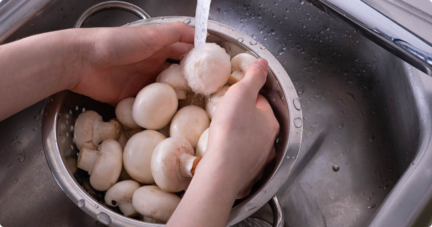 Если вы используете целые шампиньоны, тщательно их промойте, удалите грязь и обсушите. При желании вы можете удалить ножку, но это не обязательно.